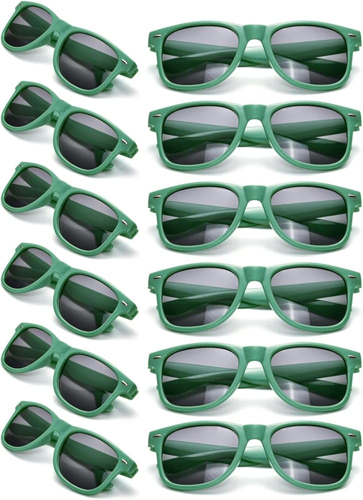 MULTICOLORS: 12-pack assorted neon color sunglasses, Neon, White, Red, Green, Black, Pink, Hot Pink, Yellow, Orange, Purple, Blue, Royal blue, great for parties, activities, wedding or any get together.