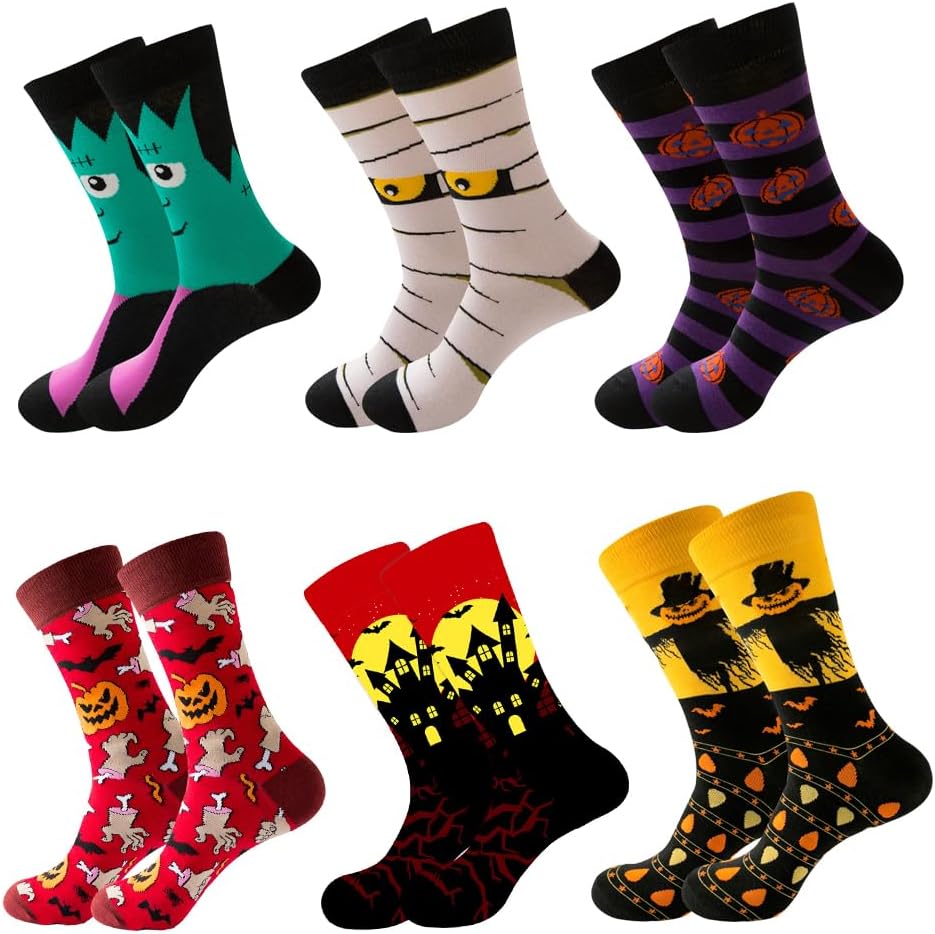 Come with 6 pairs of Halloween socks, assorted novelty and colorful Halloween theme patterns for you and your family and friends. Enjoy this upcoming Halloween by these festive and fashionable socks adorn with colorful and weird Halloween prints.