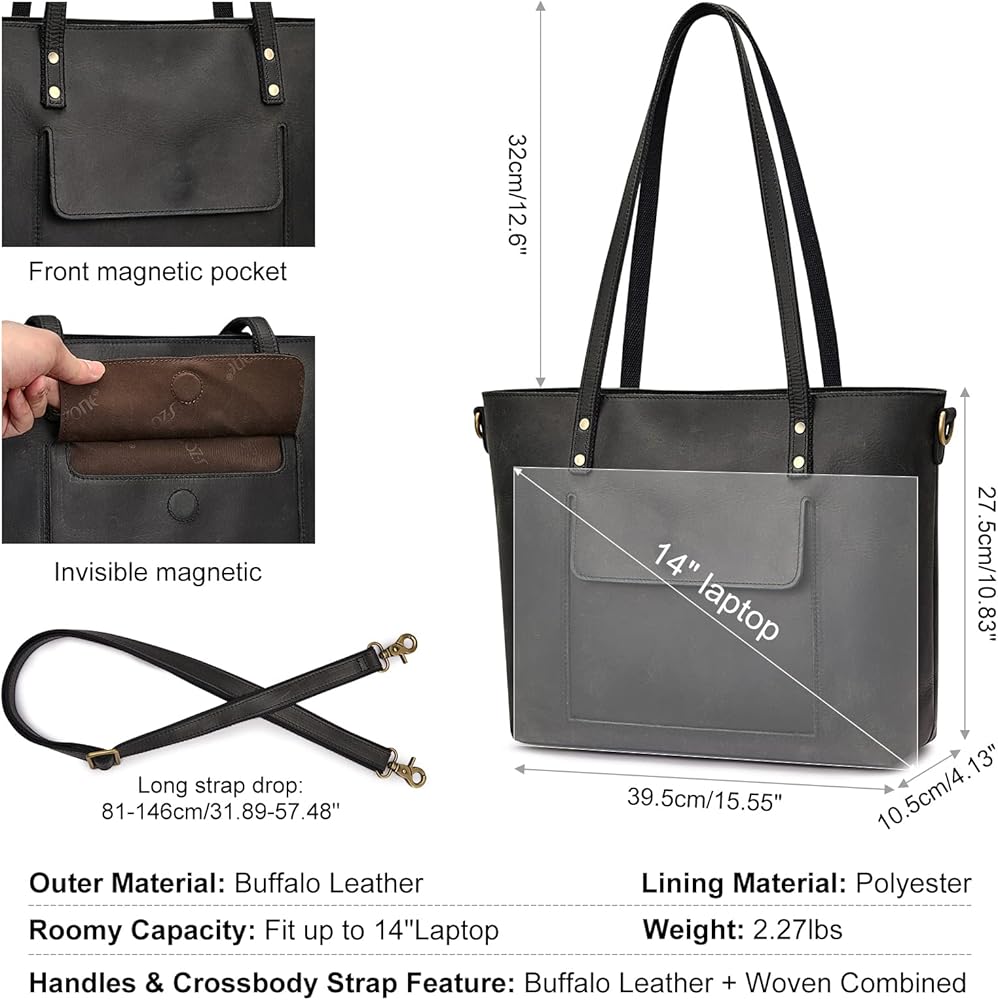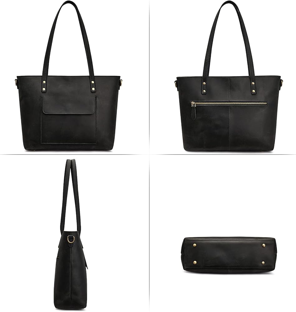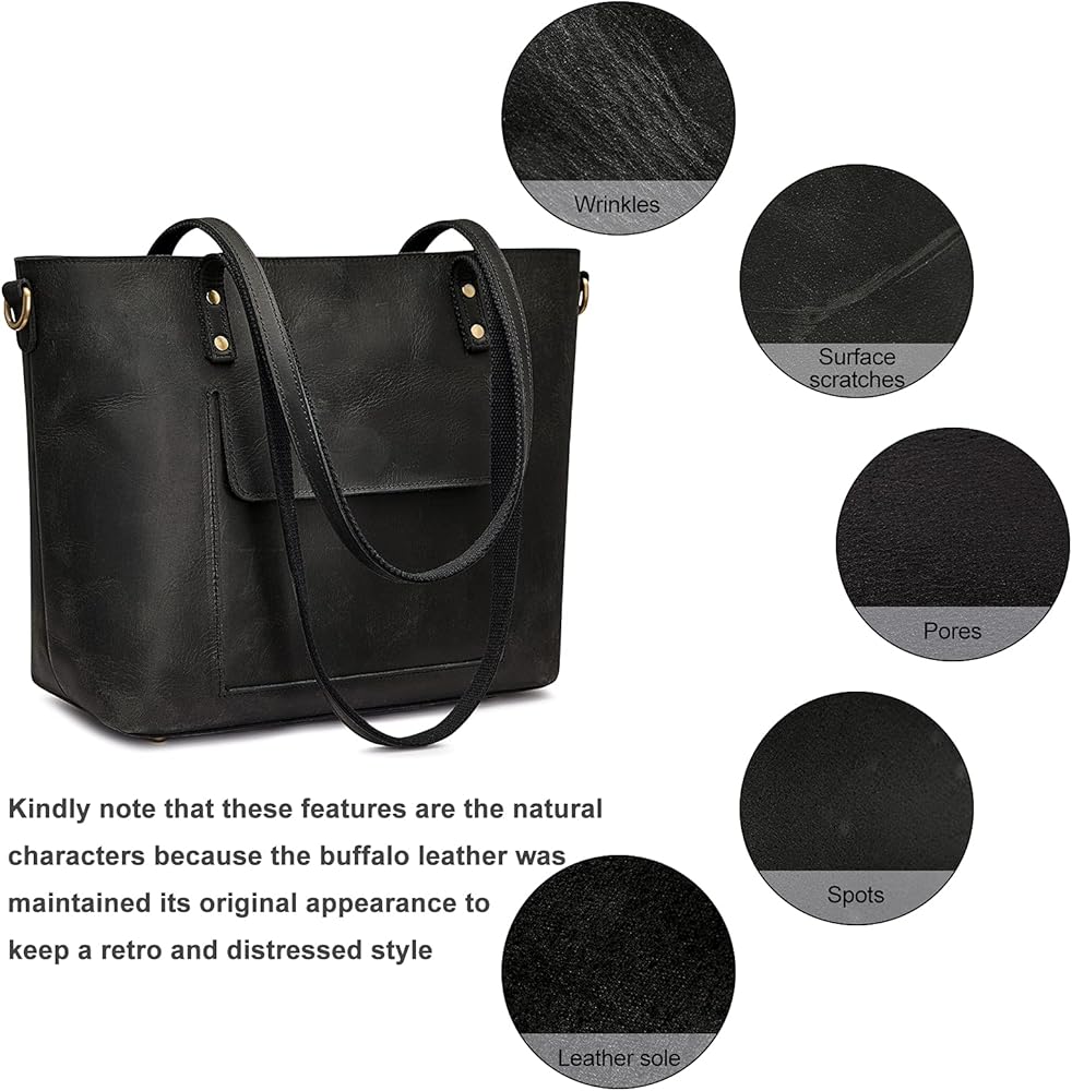 【TOP CRAFTSMANSHIP & PREMIUM GENUINE LEATHER】:This leather tote handbag is made of durable BUFFALO leather and antique brass-tone rustproof hardware as materials. Each handle has TRIPLE REINFORCED stitching and metal nails, a more sturdy