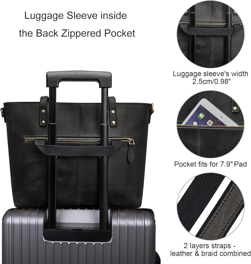 【UNIQUE & HUMANIZED DESIGN】:Handle made of leather and braid combined, more sturdy and comfortable. The back zippered pocket comes with a dilated BRAIDED TAPE for SUITCASES HANDLE. Removable long shoulder straps make this bag can be used as a CROSSBODY BAG, DAILY PURSE, WORK TOTE, or TRAVEL BAG