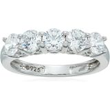 STYLE: This timeless 5-stone ring features 5.25mm (3 carats) round cut Infinite Elements Cubic Zirconia in prong settings on a 3.5mm wide band; perfect on its own or wear with your favorite Amazon Collection jewelry