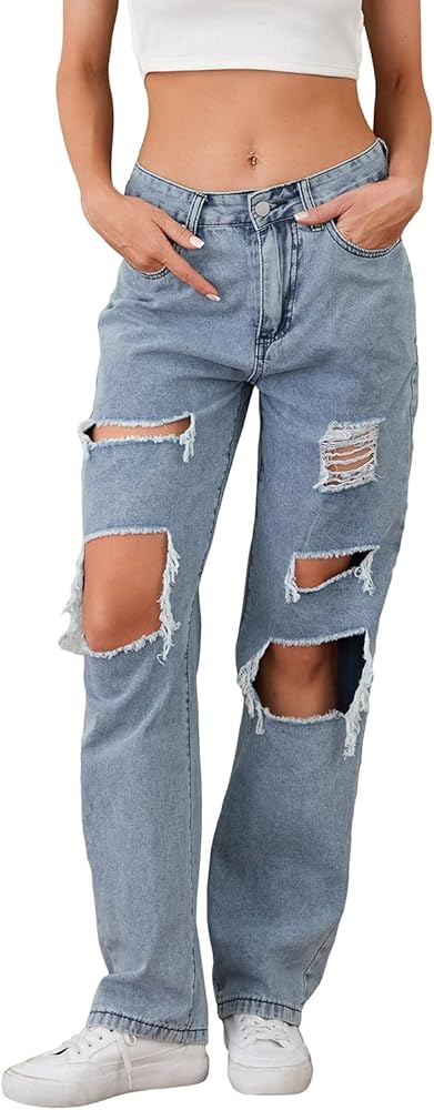 All match:Baggy ripped high waisted jeans boyfriend jeans for women ripped jeans for teen girls 90's wide leg jeans baggy jeans with holes cute loose jeans with rips jeans for women trendy easy to match with tops, vests, sweaters or coats, can be worn all year round, summer or winter