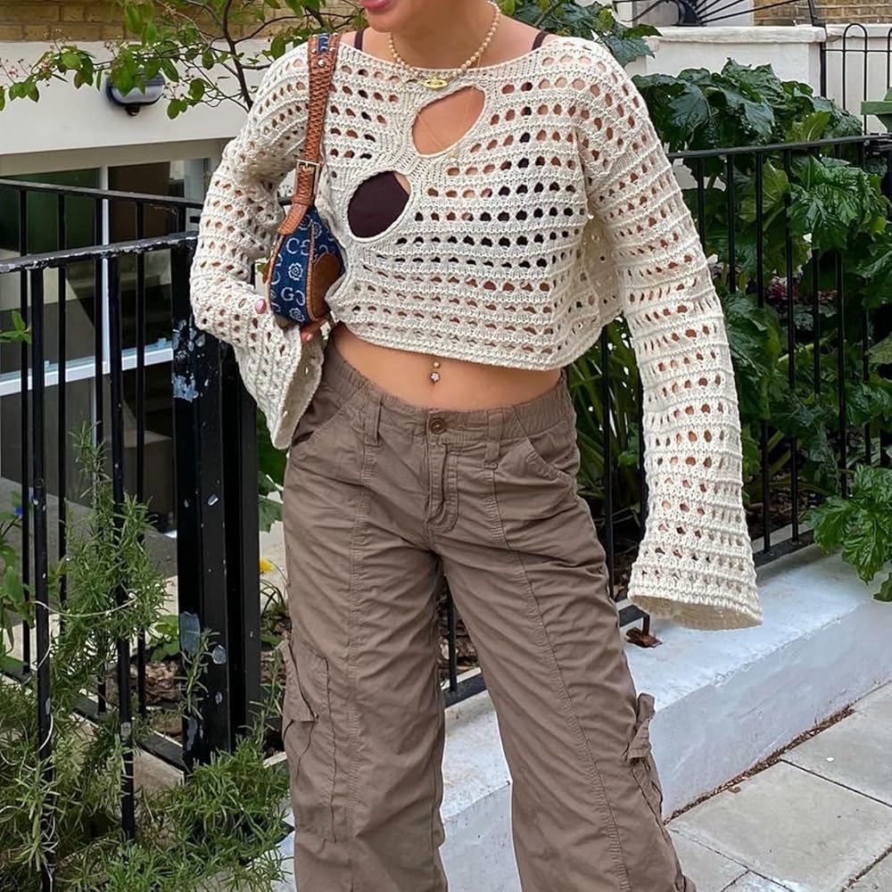 Occasion: Women y2k long sleeve crop top crochet knit colorful hollow out pullover vintage summer fall sweater, knitted crop top,y2k sweater is perfect for home wear, party, vacation, college, holiday, travel, seaside, daily wear, casual ,shopping, photo shoot, school. Preppy clothes, preppy tops for teen girls.