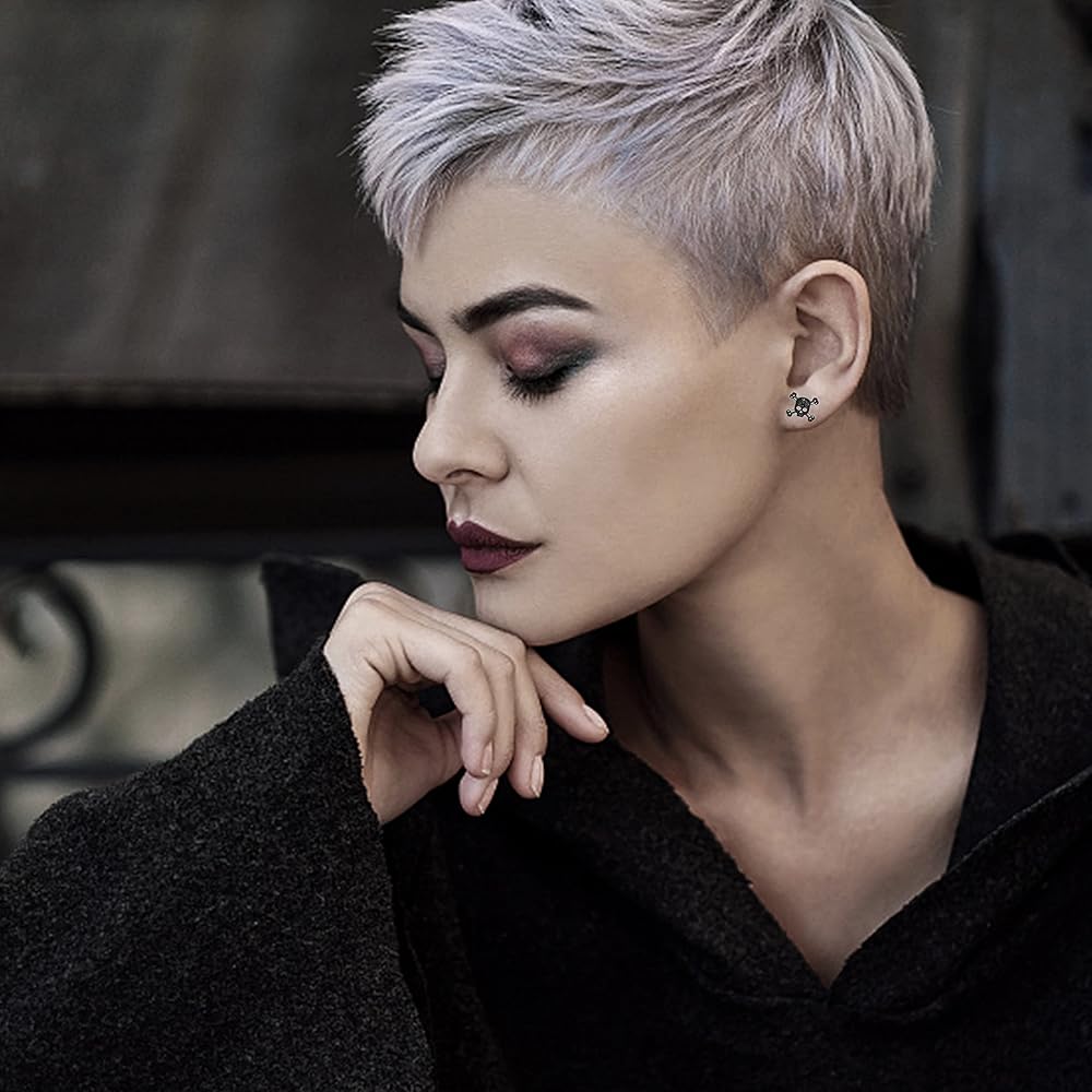 【Materials】Punk skeleton stud earrings are made of stainless steel. Black oxidized paint was sprayed and polished, and the skull surface was made into a shiny shape, adding to the texture of the whole.