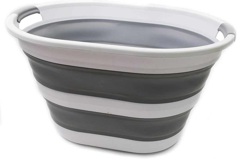 SAMMART 34L (8.98gallon) Collapsible Plastic Laundry Basket-Oval Tub/Basket-Foldable Storage Container/Organizer-Portable Washing Tub-Space Saving,Water Capacity 29L (7.66 Gallon) (1, Grey)