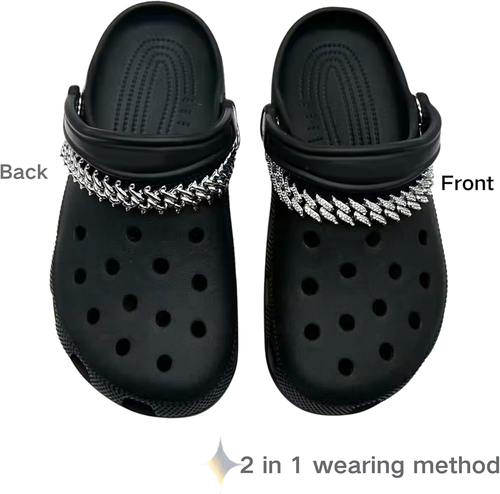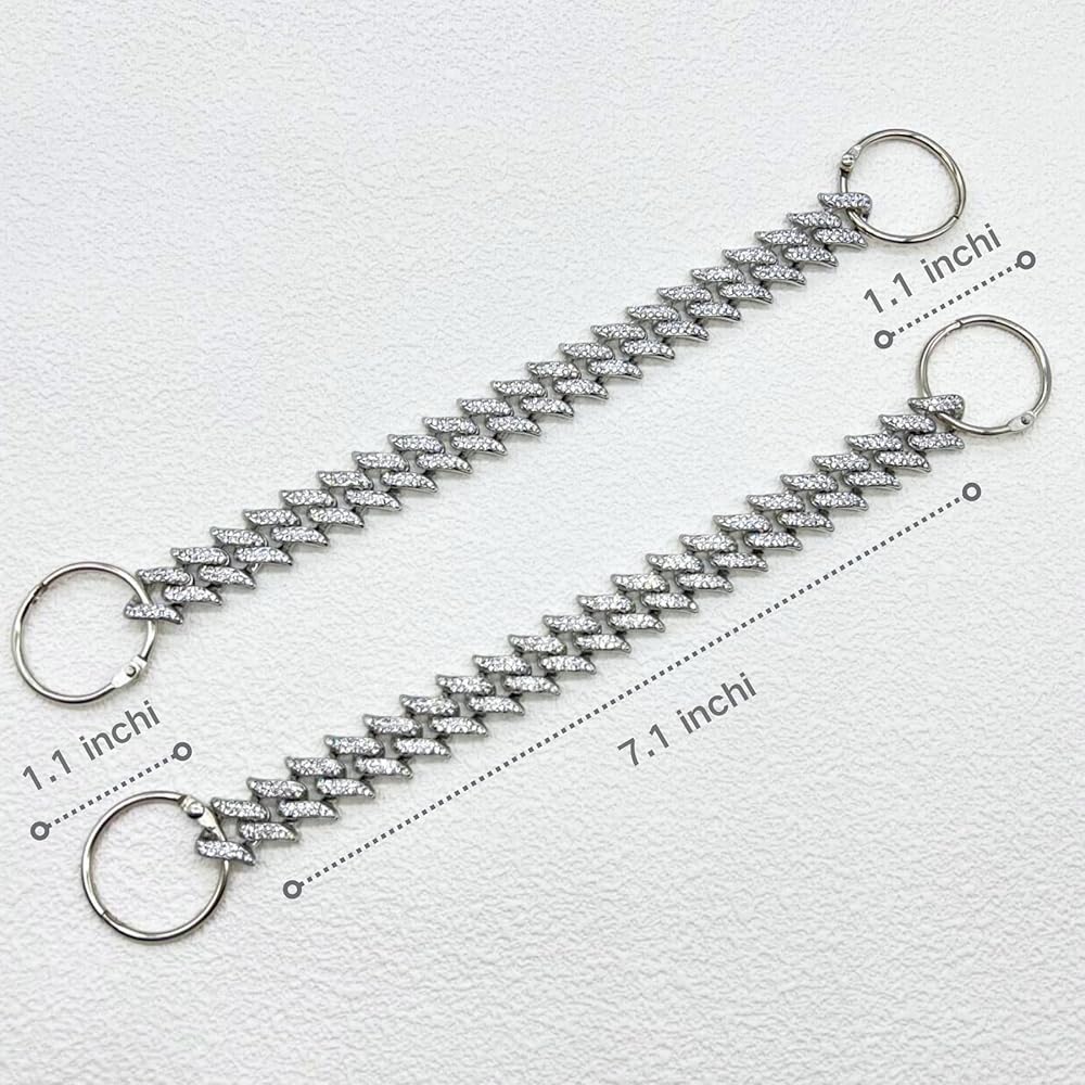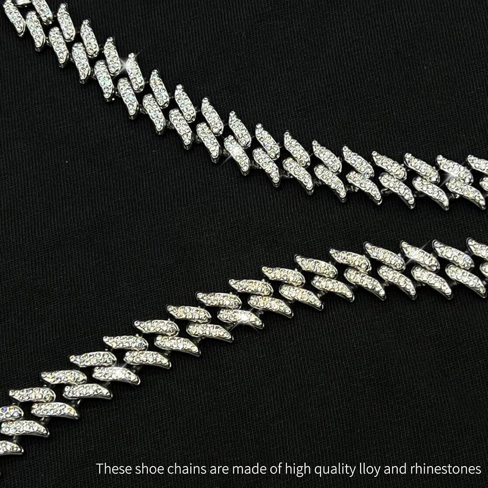 【DIY FUN & CHANGE YOUR STYLE】You can use the shiny Cuban shoe chains to apply to jeans, bags, canvas shoes, boots, etc. according to your preferences. Two-in-one design, it can be worn from the front or from the side to bring you new matching inspiration, so that they are no longer monotonous and repetitive.You can use the shiny Cuban shoe chains to apply to jeans, bags, canvas shoes, boots, etc. according to your preferences. Two-in-one design, it can be worn from the front or from the side to