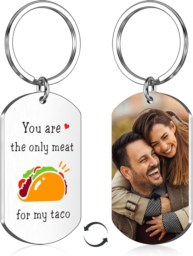 【Funny Anniversary Gifts for Him Men Boyfriend】This personalized key chain engraved with a cute taco pattern which makes a perfect naughty gifts for lover. Make the unique to your husband, wife, boyfriend, girlfriend, fiance, fiancee, bride, groom to let him/her know that: “You are my soulmate, my best friend, my one and only. You are the only meat for my taco.”