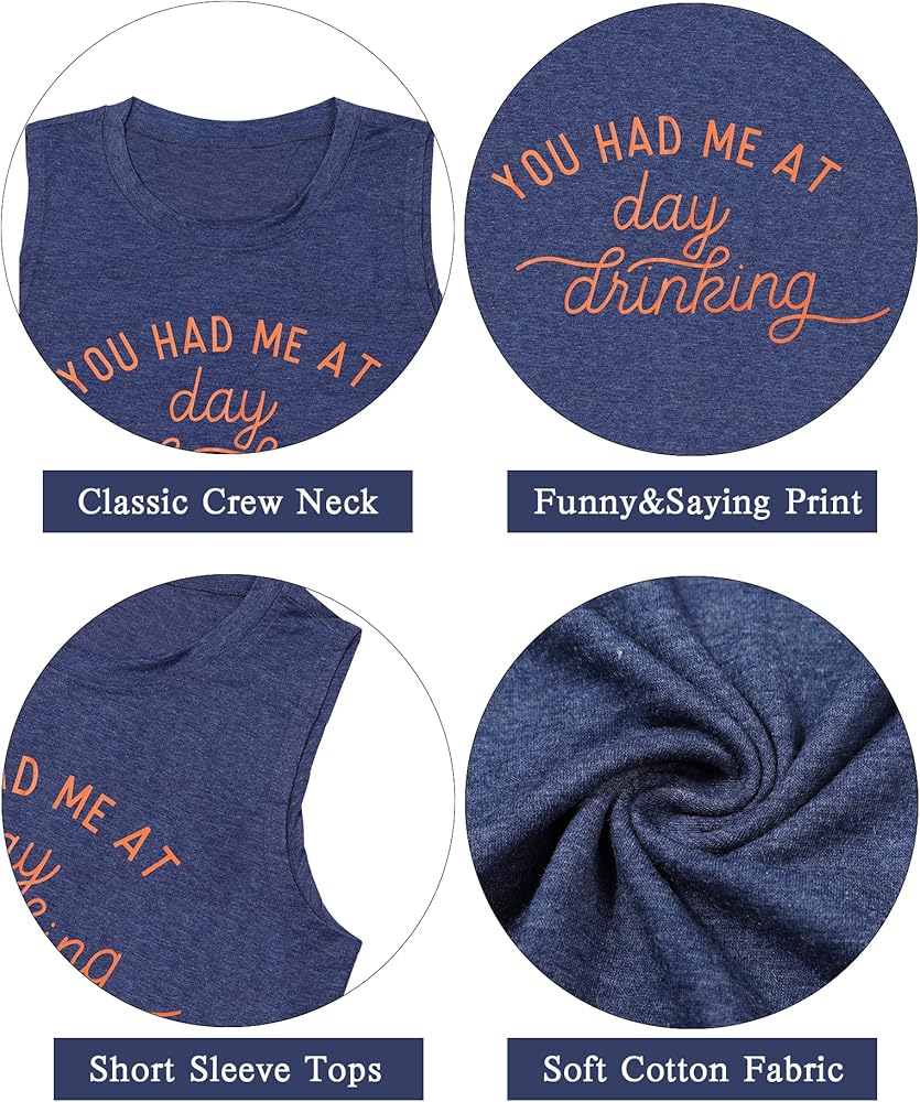 Unique Design: You had me at day drinking letter print, day drinking tank shirt for women, casual Summer fashion sleeveless tank top, fine tailoring processes, funny saying shirt.