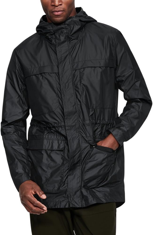 UA Storm technology repels water without sacrificing breathability. Wind-resistant materials & construction shield you from the elements. Mesh lining for greater breathability. Secure double-entry hand pockets & chest pockets. Waist drawcord for a custom fit. Split drop-tail hem. Back venting. Adjustable cuffs.