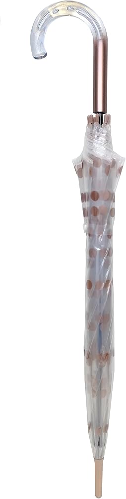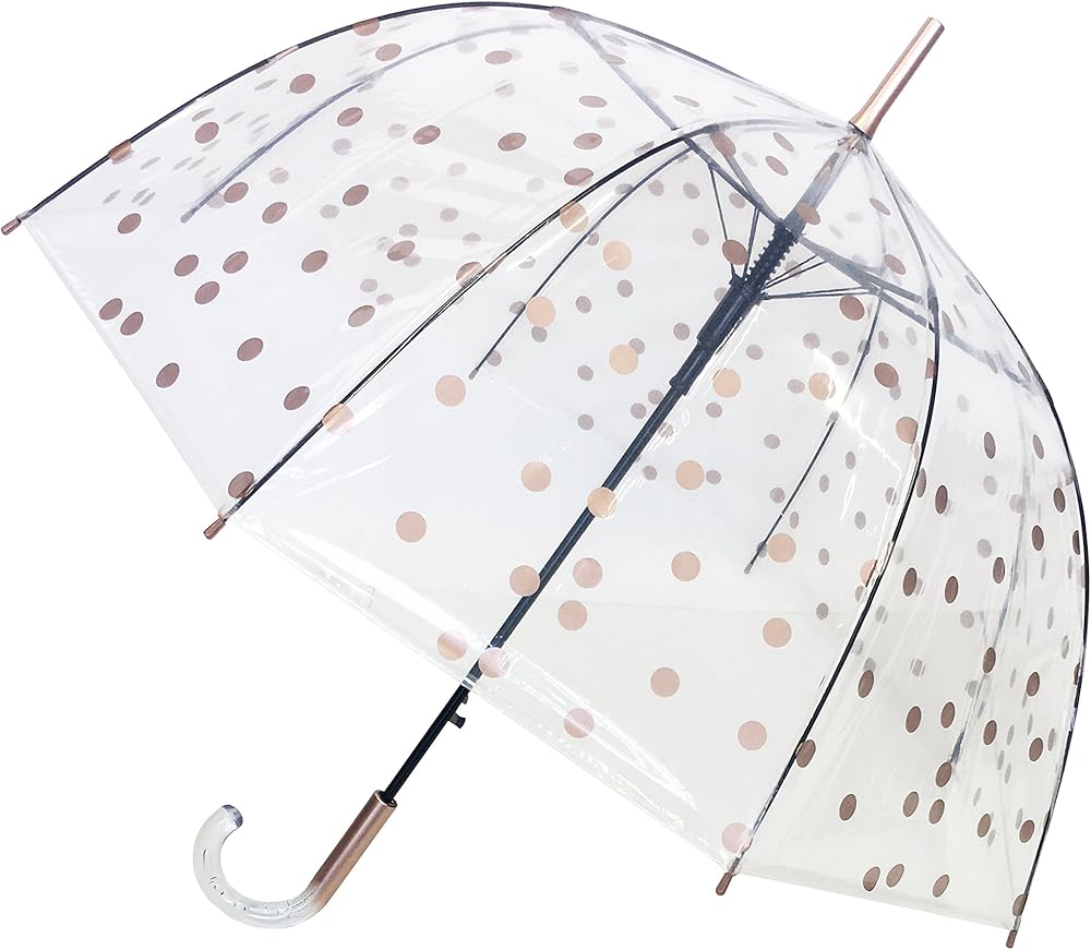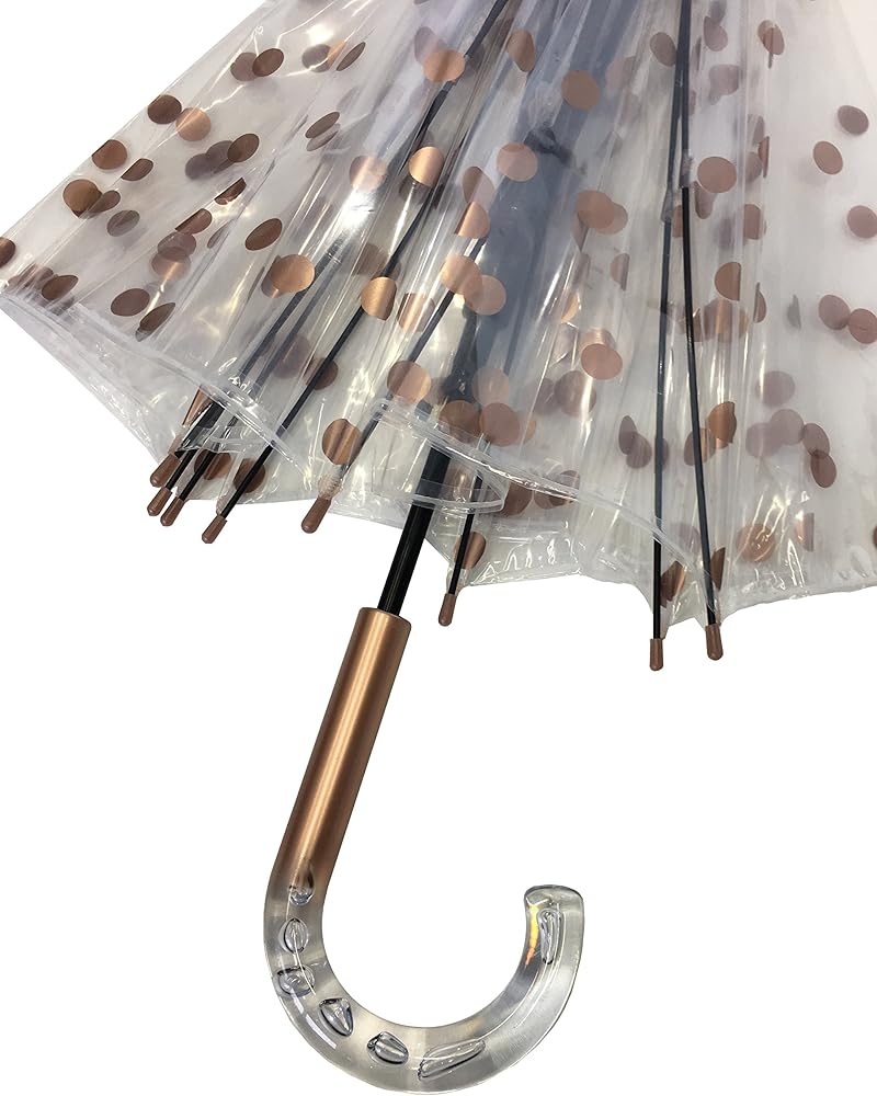 SMATI Paris - Lady’s Clear Birdcage Umbrella in Coppery Metallica color Dots – Transparent; Windproof; Auto open; Crystal style handle; French design; Dome shape umbrella