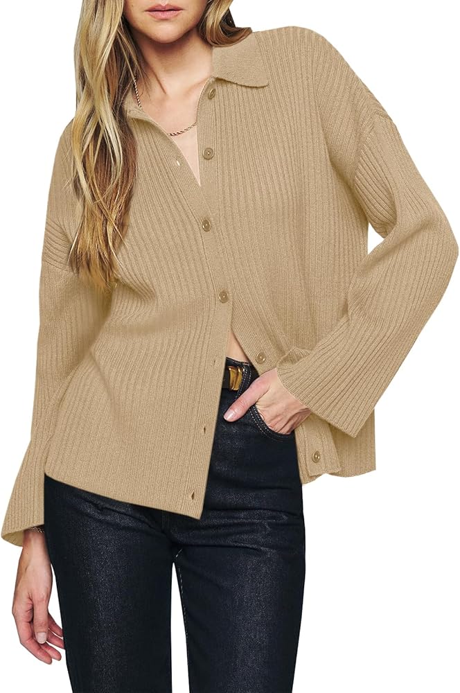 Features: Ribbed sweater cardigan with button front, drop shoulder sweater coat with polo collar, long bell sleeve for a more textured look, baggy slouchy style and below hip length for a unique design and chic look. You'll feel confident and comfy in this knitwear cardigan.