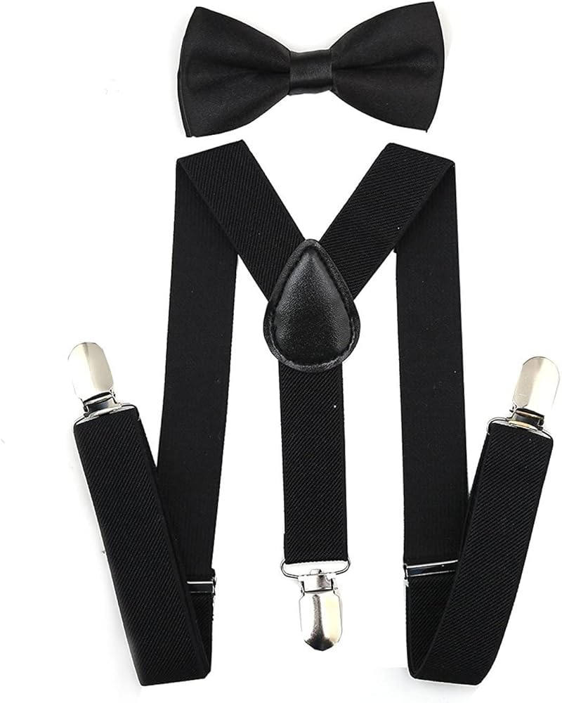 Classic Y-back Style Clip-on Suspenders with Pre-tied Wow Tiemade of 70% Polyester / 30% Spandex with Adjustable Straps