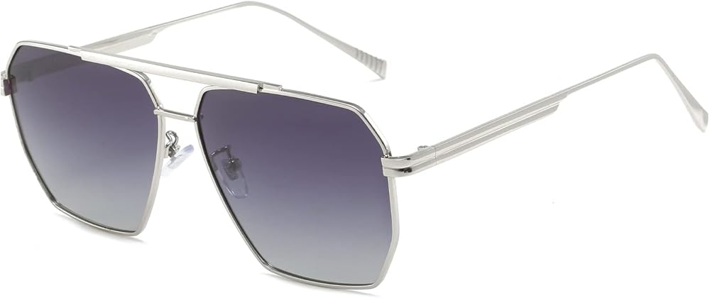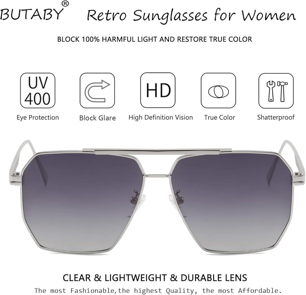 VINTAGE DESIGN - The fashion sunglasses features a flat top and double nose bridge design, not only is the oversized and square design makes slim frame looks very delicately, but also the aviator shape makes the overall look of the sunglasses more retro. With the super classic aviator shaped frame and square lenses, take a sense of high retro fashion on any occasion.