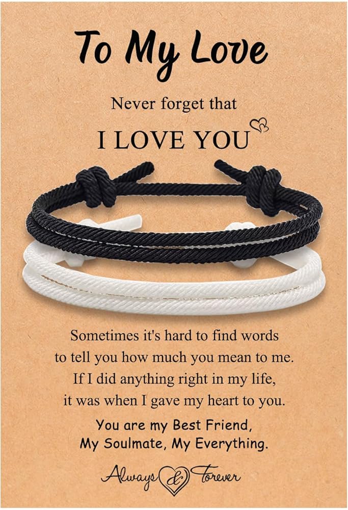 【Couples Bracelets】:I promise to wear this bracelet and remember how lucky I am to have you - no matter where we go, no matter what we do, you'll always be there for me, and I'll always be there for you.