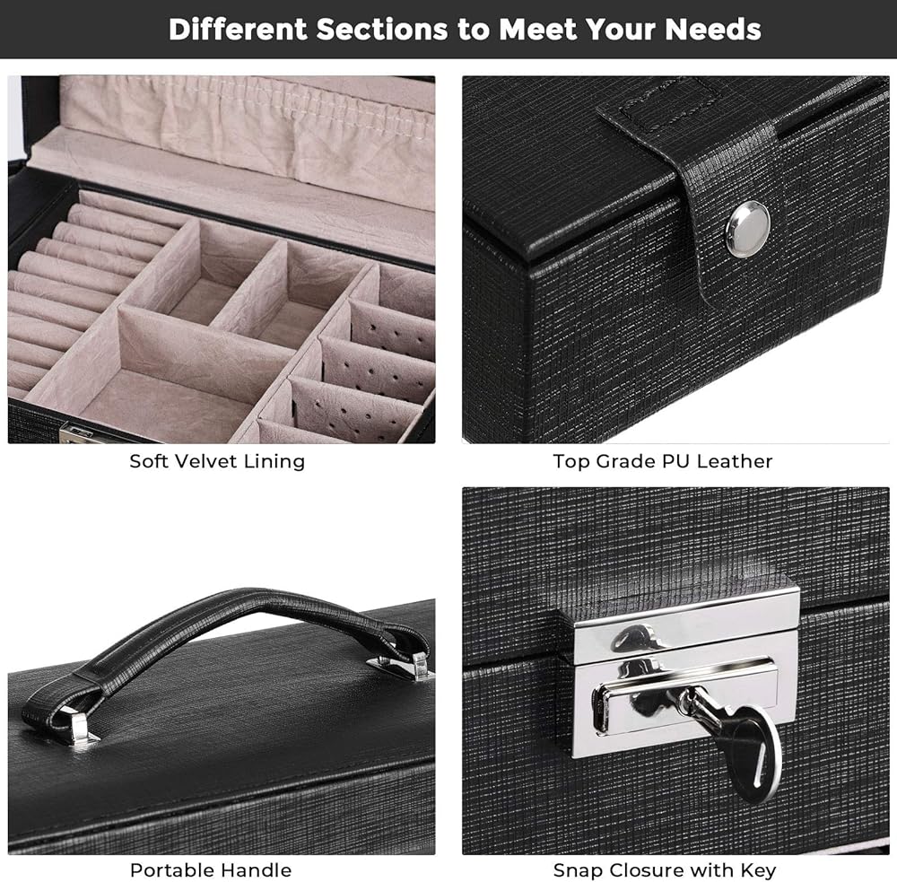 【SNAP CLOSURE WITH KEY & CONSIDERATE DETAILS】 You can use the key to lock the jewely box when necessary, which protects your privacy. Anti-rust metal latch is easy to manipulate. It opens up like a butterfly spreading her wings. The handle makes the jewelry case looks decent and easy to tote.