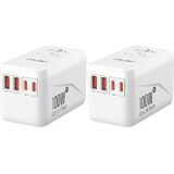 LENCENT Universal Travel Adapter, 100W GaN3 International Adaptor with 2 QC4.0 USB-A+2 PD3.0 Type-C PPS Fast Charging, Worldwide Wall Charger for iPhone,Samsung,Laptop, Plug Adapter USA/UK/EU/AU Black