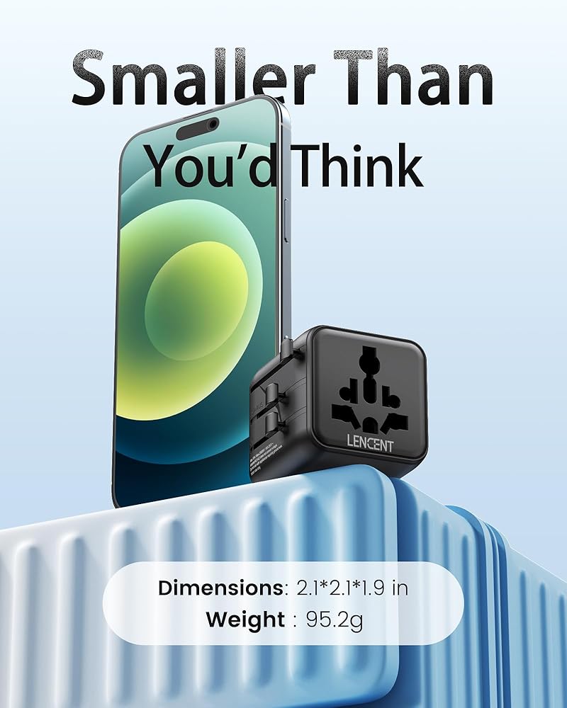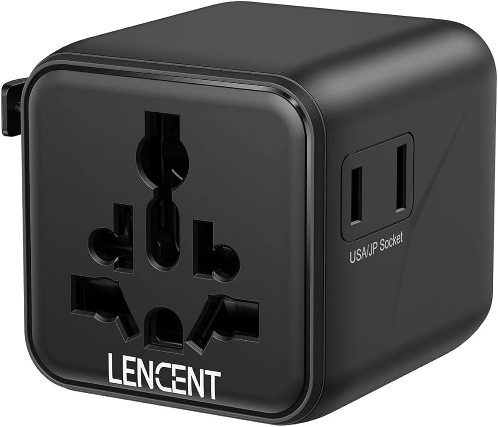 LENCENT 140W International Travel Adapter, GaN Universal Travel Adapter with 1 USB-A & 3 Type C Power Adapter, Fast Charger for Phone,Laptops, Worldwide Plug Adapter for USA/UK/EU/AUS, Black