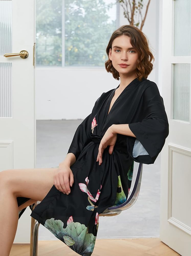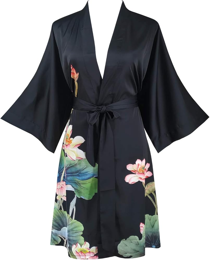 This is a beautiful and elegant mid-weight kimono with a variety of colors to choose from, suitable for lounging, bathing or sleeping. Easy to clean and easy wear. Soft, gentle material and luxurious drape. Suitable for bridal parties, anniversaries, honeymoons, vacations or everyday leisure. This robe features a removable belt/sash, two belt loops and two inside tie strings. The robes are made of high-quality materials with a silky luster and smooth, soft and silky touch. This robes ensure the ultimate in comfort and style in any season. It is the great gift for the bride, bridesmaid, mother, wife and girlfriends.