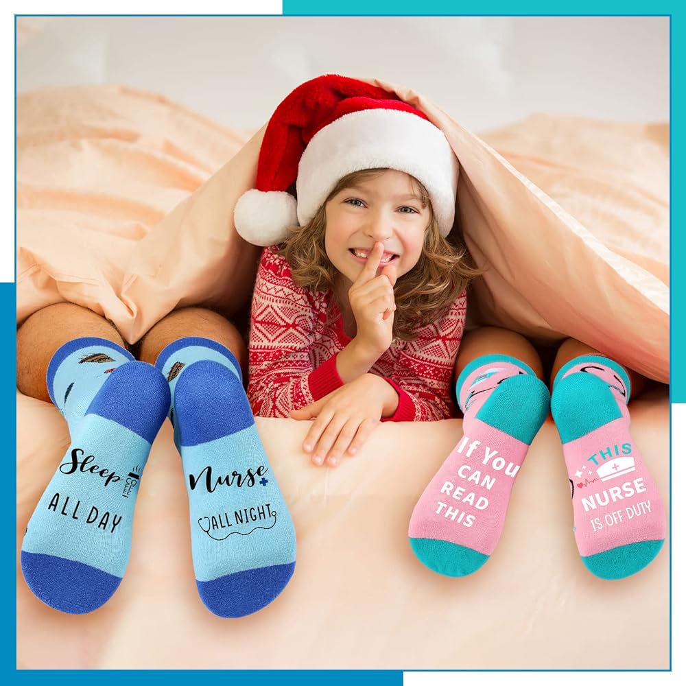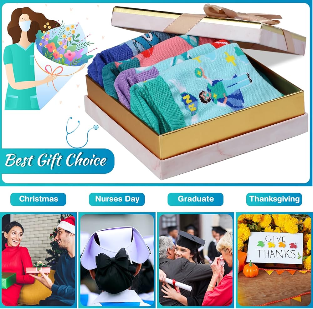 محتويات العبوة: تأتي العبوة مع 4 أزواج من جوارب التمريض المضحكة، متوفرة بأنماط مختلفة، مما يوفر كمية كافية ومجموعة متنوعة من الأنماط للارتداء اليومي أو احتياجات الاستبدال؛ دلل أعز ممرضتك بهذه الجوارب كهدية تخرج للممرضة، للتعبير عن تقديرك العميق لهذه الزوايا البيضاء بطريقة فكاهية