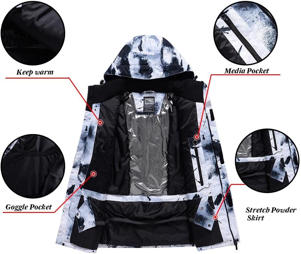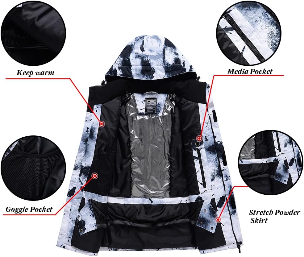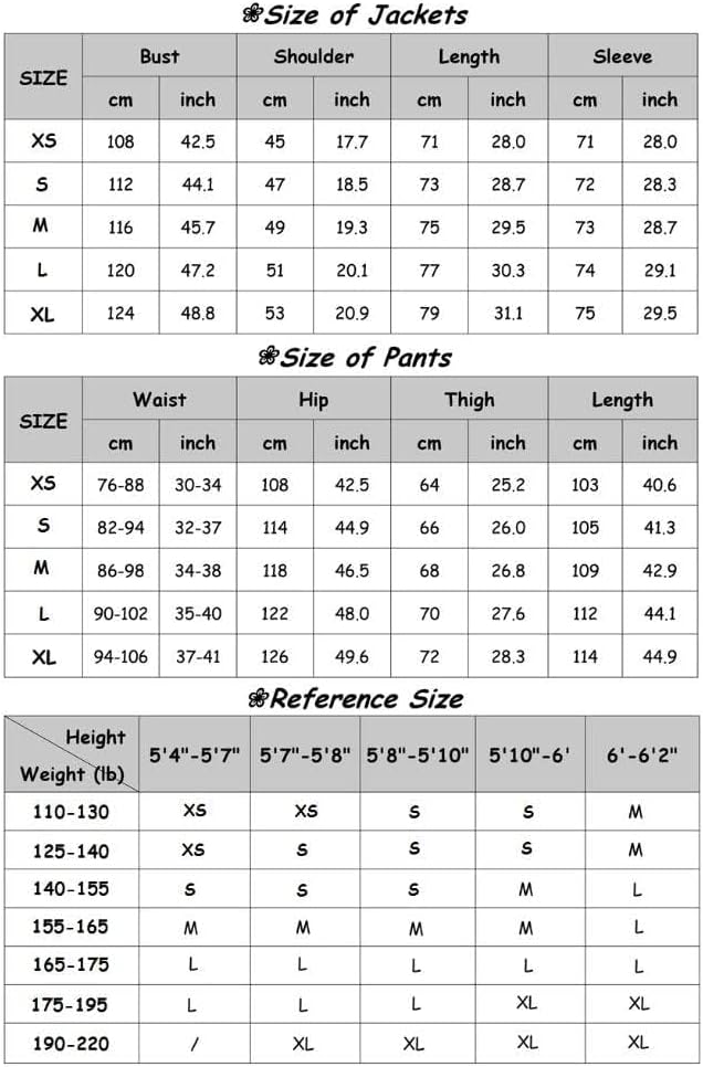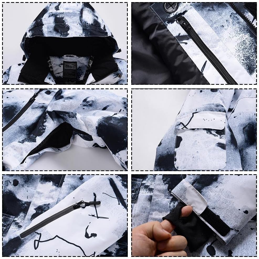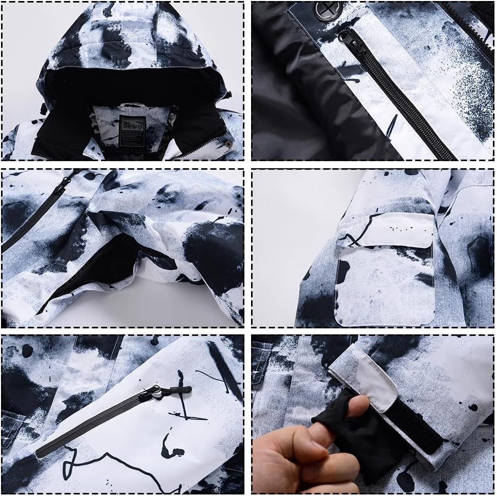 Special Design:The jacket with hoodie design,heightened windproof collar,and have a zip pockets at the cuffs ;removable strap design pants, with waterproof zipper and velcro,double-layer snow-proof and warm fabric.