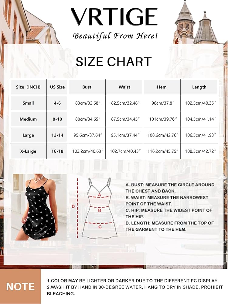 The heart print full slip nightdress for women is made of high-quality satin fabric, smooth and lightweight, very comfortable to wear for night.