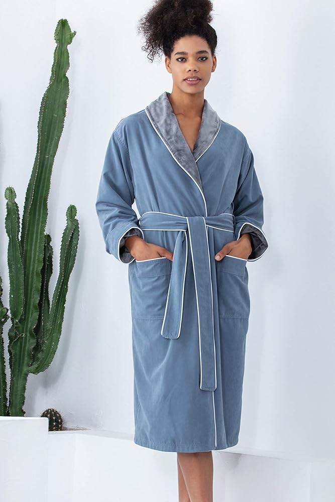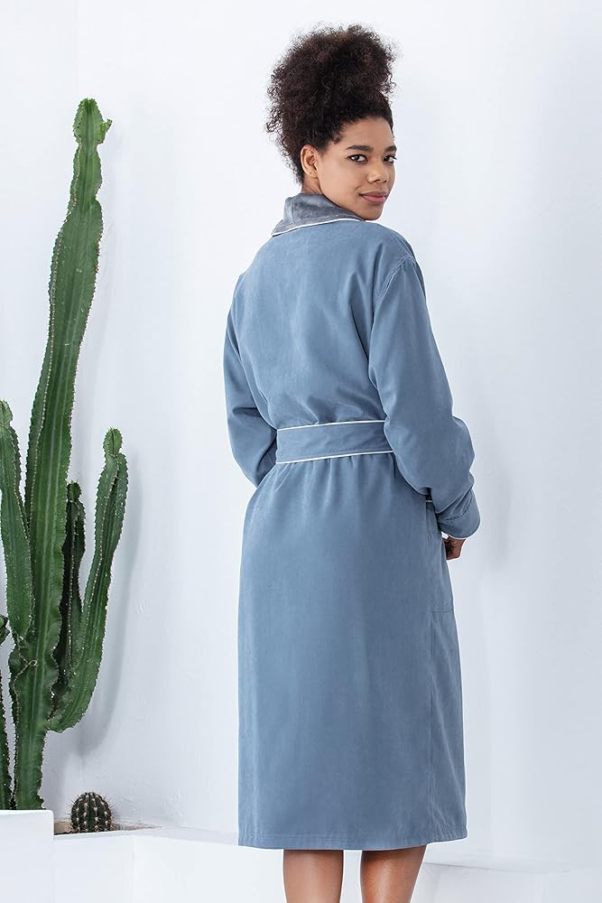★LET THE SUPER-SOFT SUEDE-LIKE LAYER MELT YOUR TENSION and allow you to relax faster after a long day at work. Read your favorite book, watch a movie or simply lounge in your knee-length cozy robe.