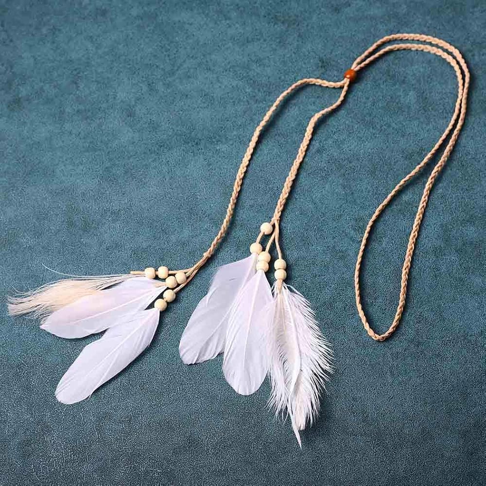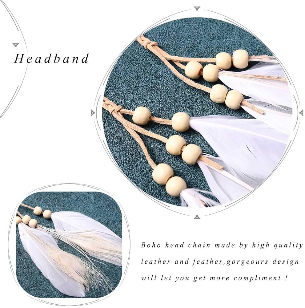Boho hair band is made by feather,wood bead and faux leather.Brown/Black/Beige color as picture show.