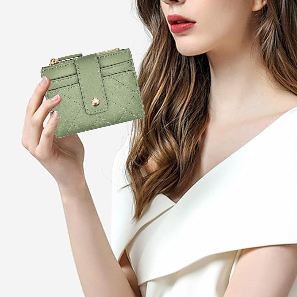 Mokoze Small Wallet for Women, Credit Card Wallet with ID Window and Zipper Pocket PU Leather Bifold Wallet for Gift Giving, Travel, Shopping and Everyday Use (Green)