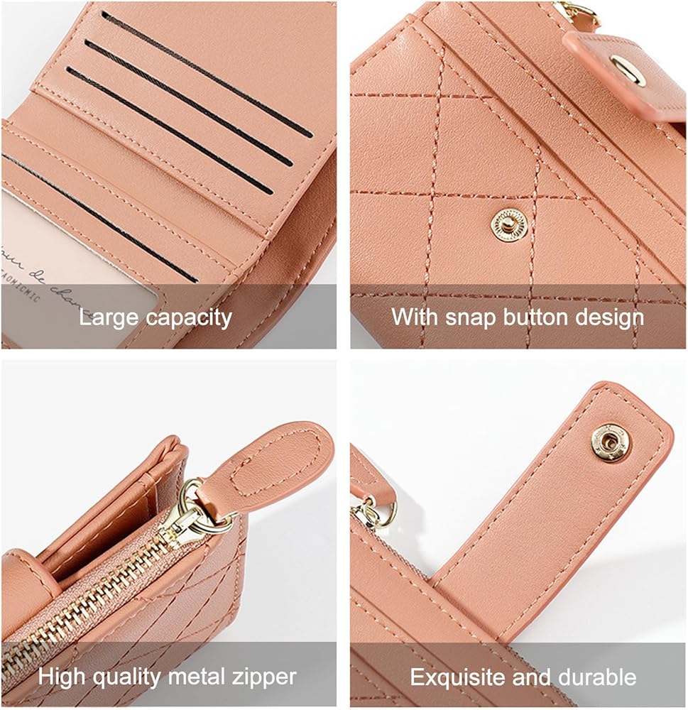 Quality Material: This womens wallet small is made of high quality PU leather, which is comfortable and soft to the touch. With snap button design, net sewing thread and high quality metal zipper, every details of this cash wallet to make it not only looks very exquisite, but also durable