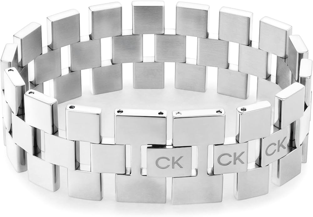 Make a Statement: Distinctive sculpted grid pattern bracelet featuring high polished metal finish.