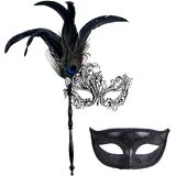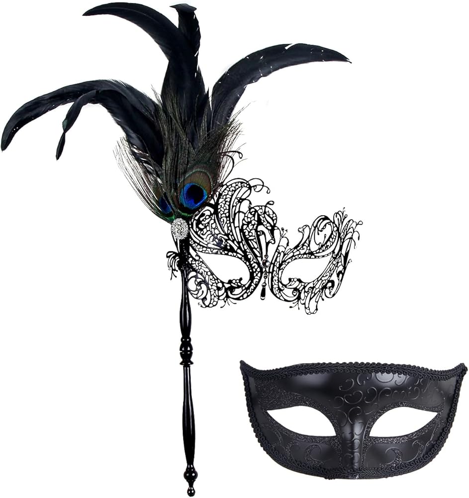 【Premium material】 couple masquerade masks with stick are made of metal, decorated with tiny rhinestones inlaid and glitter,the masquerade mask can be molded to the contours of the wearers face easily,friendly to the ones of glasses-wearing.comfortable, lightweight, universal-fitting design.chic, intricate and gorgeous masks are guaranteed to make everyone in the party admire the drama and mystery it brings to your costume.