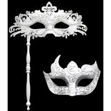 【Couples Masquerade Masks with Holding Stick】 plastic masquerade mask for men, the electroplating light weight metal masquerade mask with stick for women with sparkle rhinestone.2 x Masquerade Masks, a stunning costume decoration set.