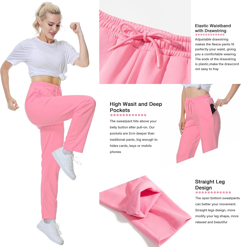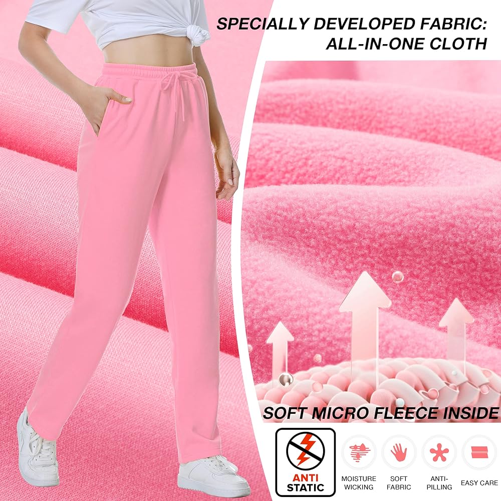 ✅ [Design]: Elastic waistband with drawstring, hight waist and straight leg, deep useful side pockets. Adjustable draw cord makes the fleece pants not too tight and not easy to slide. Plastic ends make the drawstring not easy to fray. The outside length is long enough to cover your leg.