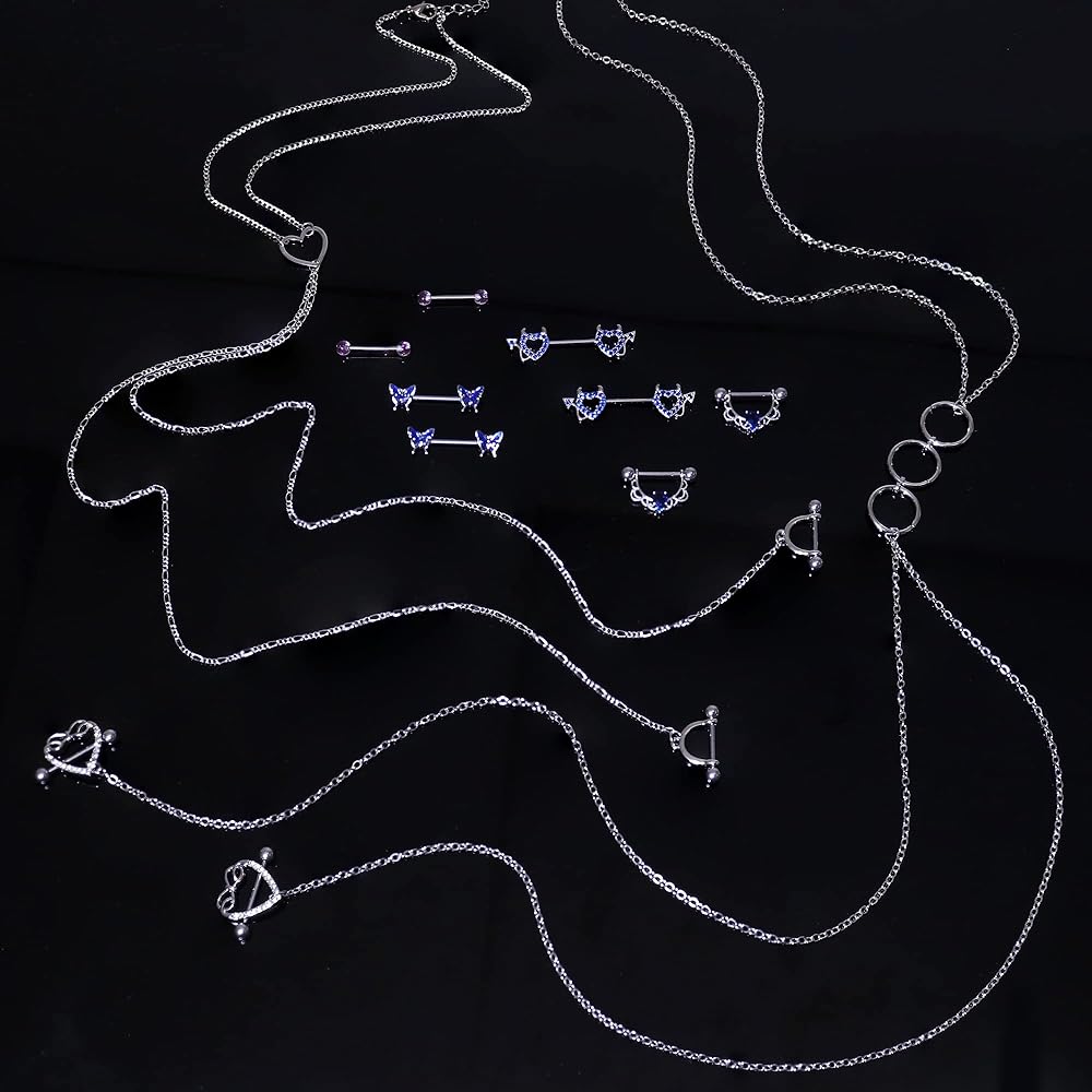 💎Nipple Rings Set--Package includes 4 pairs nipple rings and 2 pairs nipple rings with chain necklace. There are butterfly nipple rings, devil nipple rings and heart nipple rings with necklace. Dainty and sexy, add highlights to your outfit.