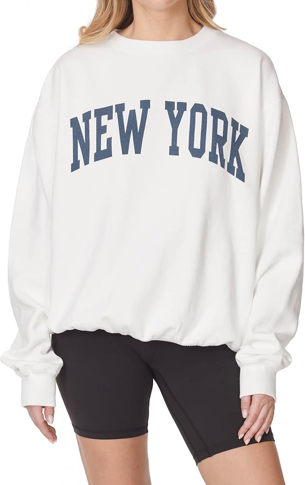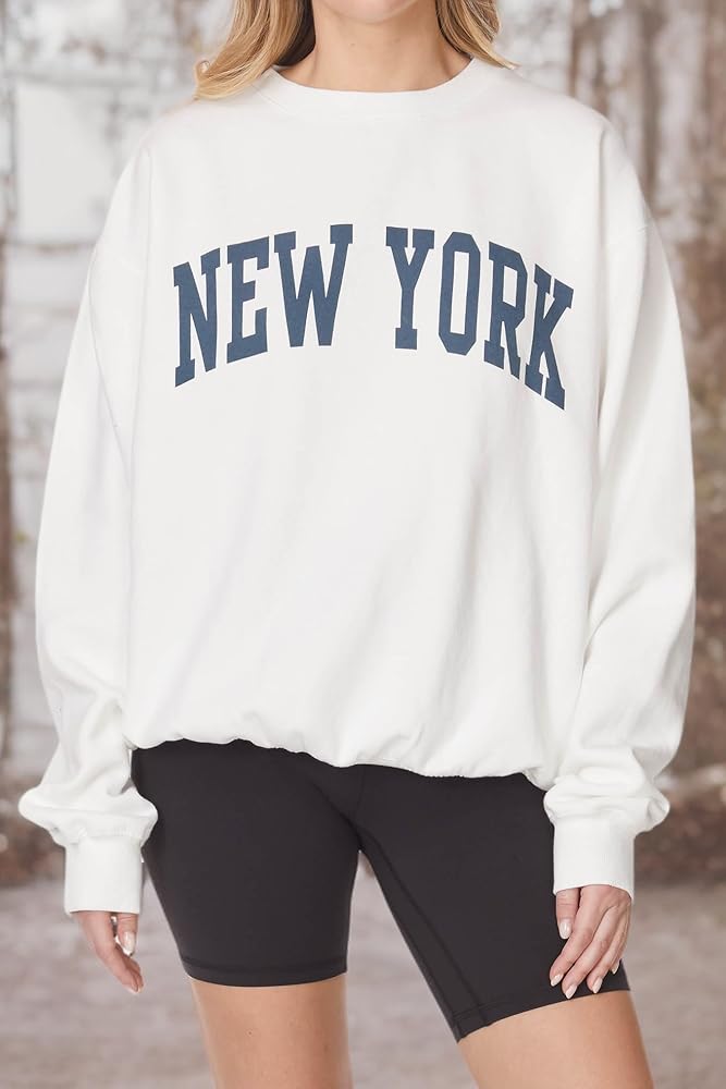 Women's Vintage Oversized New York Varsity Graphic Crewneck Sweatshirt