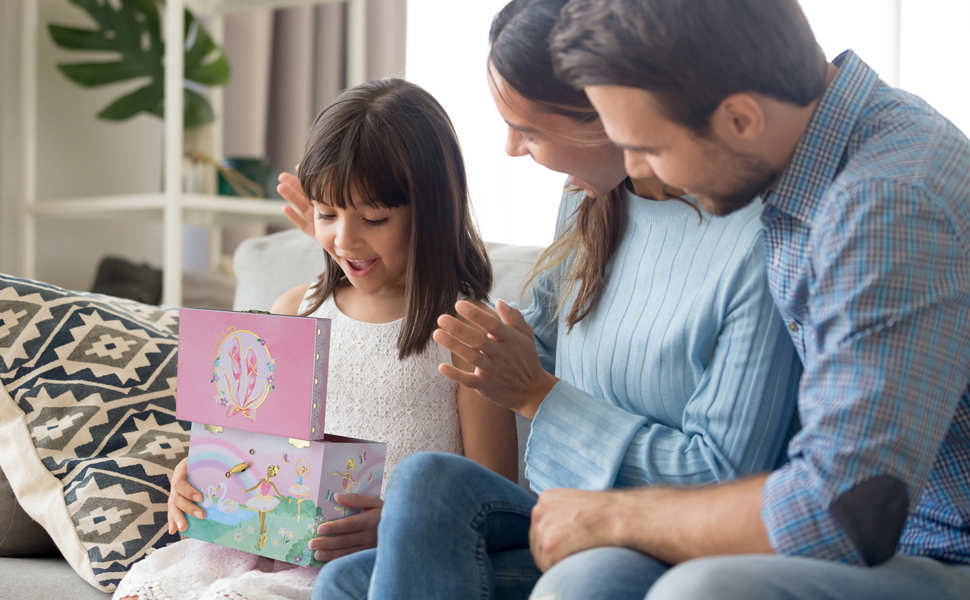 ⭐ Spark the Imagination - All of our gifts and toys are thoughtfully created with children in mind. Our unique, timeless watercolor designs will inspire creativity and fill children with happiness. Jewelkeeper Music Boxes make for great dancer gifts and are sure to compliment any ballerina decor and sit beautifully among the growing collection of ballerina toys and girl stuff in their room!