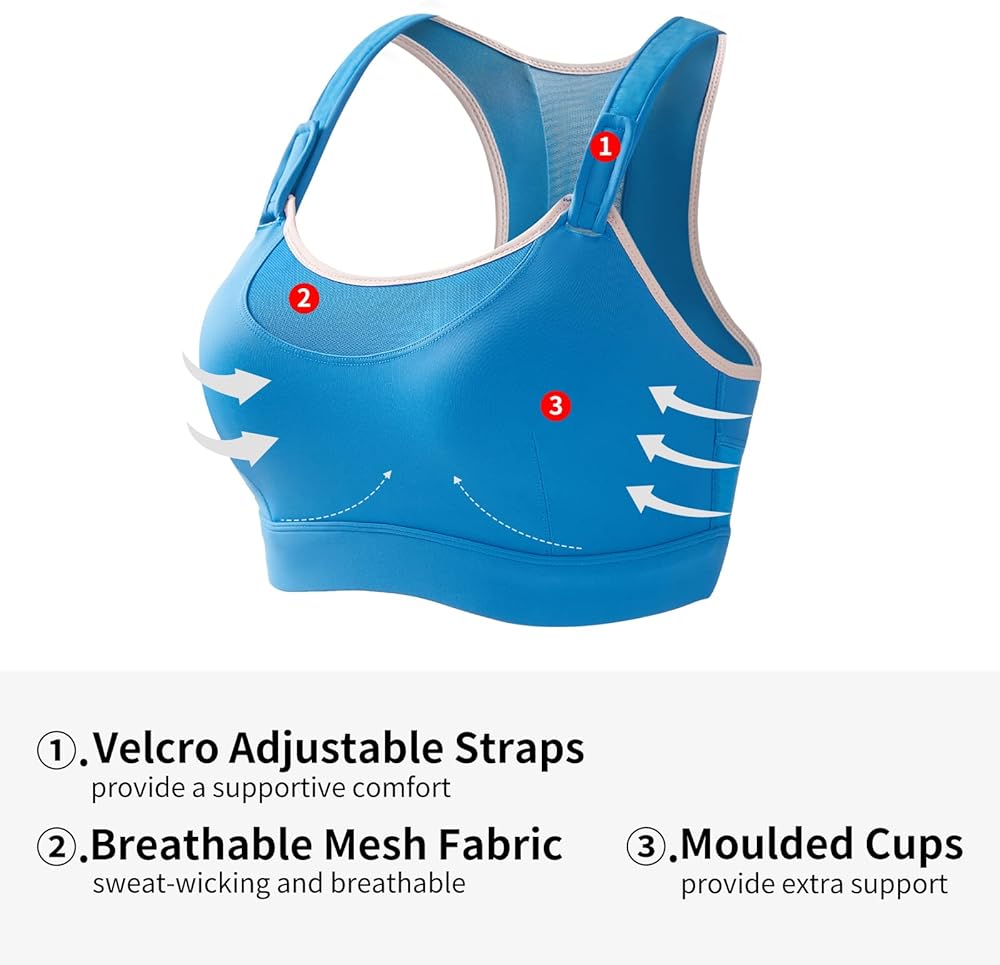 Custom Fit: The sports bras for women come with a comfy racerback which enhances maximum stability, the adjustable Hook-Eye Closure improves the customized fit and eases wearability.