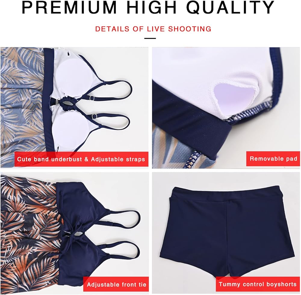 Boy shorts bottom Bathing Suit for better tummy control, shape your figure and make you feel more secure and confident,Not bunchy or tight, very cooling fabric,the handkerchief cut of tankini top is around the bottom cover thighs make it flattering, feminine, and draws the eye up