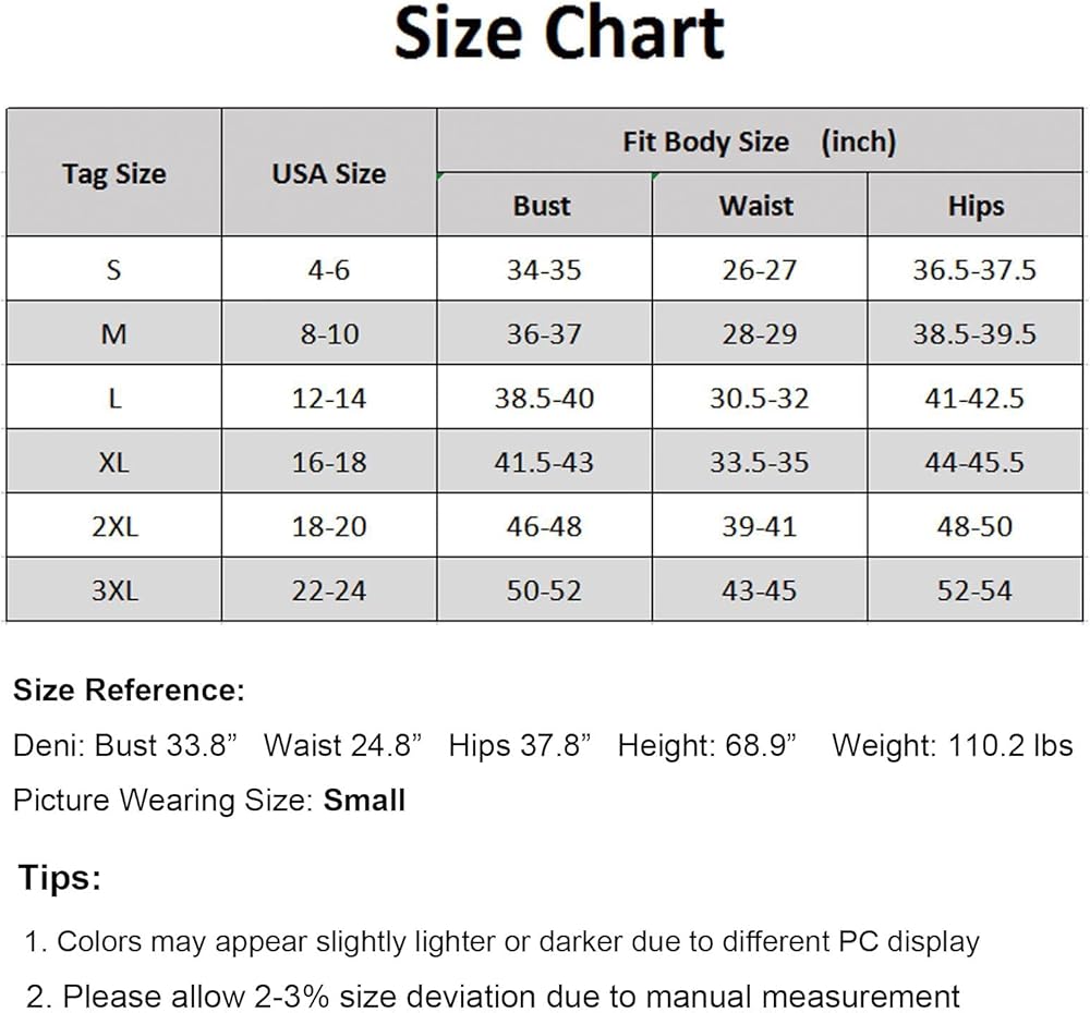Size reference:Model Deni: Bust:33.8” Waist:24.8” Hips:37.8” Height:68.9” Weight:110.2 lbs. Picture wearing size:SMALL.More size choose from: S (US 4-6), M (US 8-10), L (US 12-14), XL (US 16-18), 2XL (US 18-20),3XL(US 22-24),which one is perfect fit for you? Will you share with us?