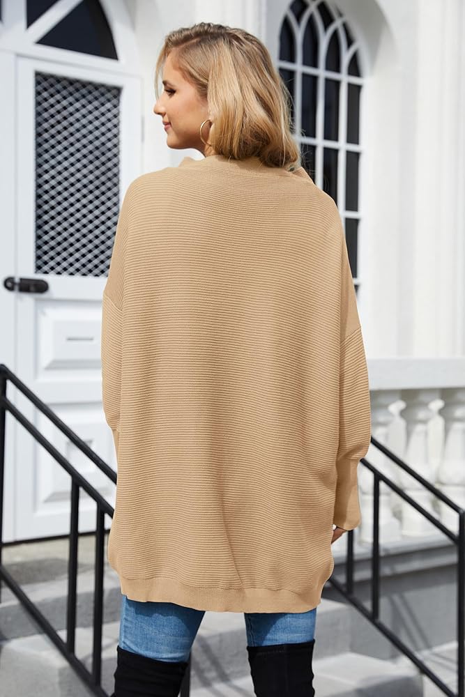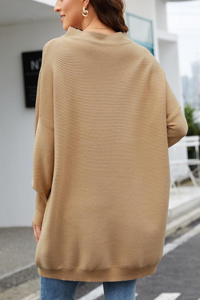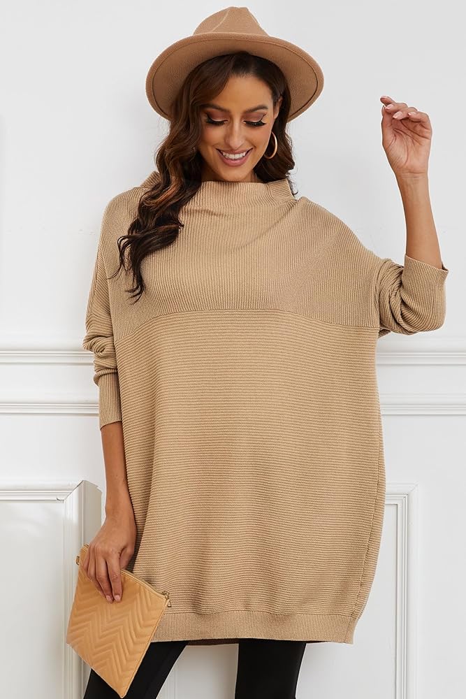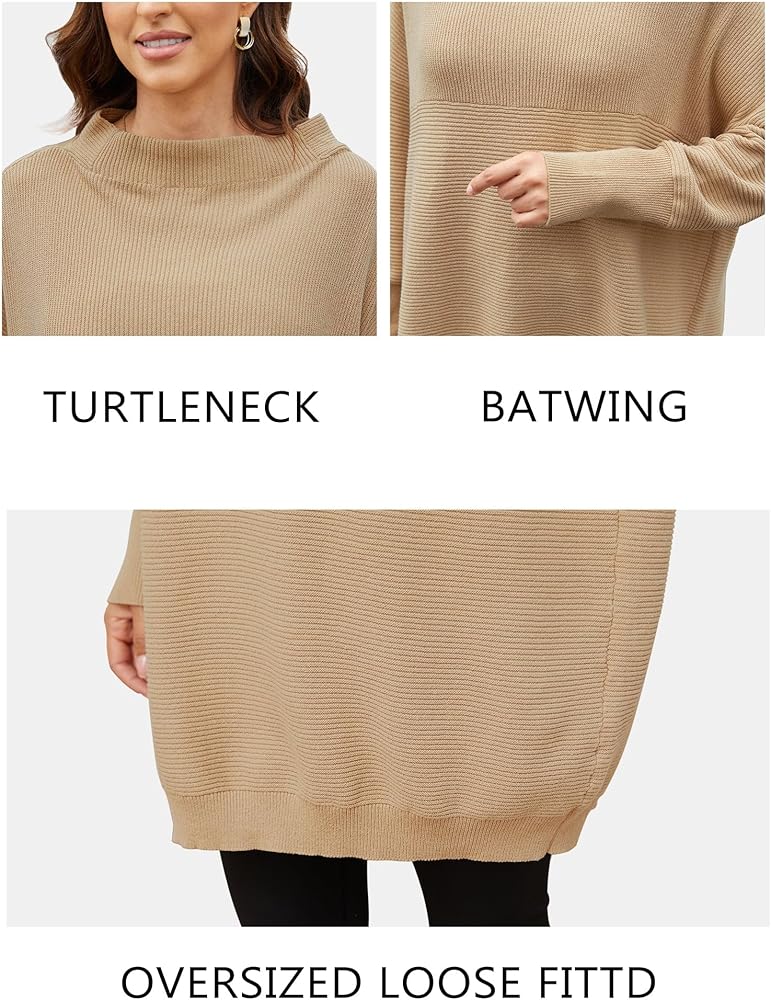 【Fashion Design】: Oversized fit and drop shoulder sleeve birng for extra movement and both flattering look. Non-choking feelling loose turtleneck deasign keep your neck warm andcomfortable all day.