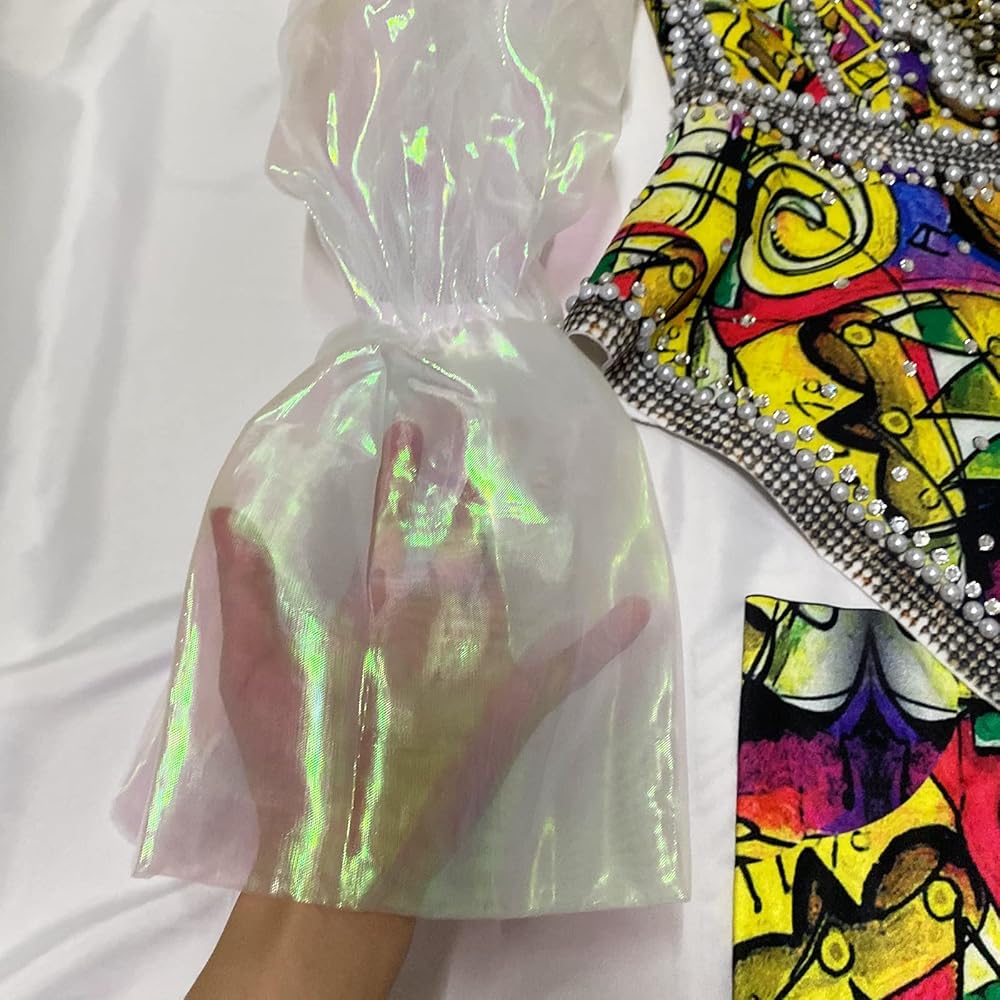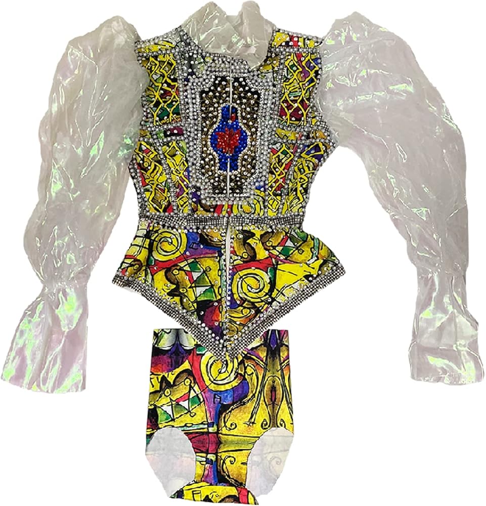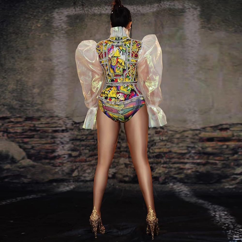 Feature:This Ladies organza lantern sleeve rhinestone high collar top bodycon bottom pants set club party 2 piece outfits bodysuits rompers clubwear and delicate patterns in middle of body. festival outfit stage 2 piece sets bodysuit are rhinestones decorate it with intersperal stones in the same color of pattern and they make the whole cloth shiny.