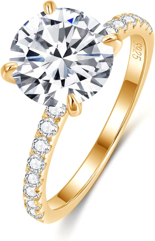 💍Material: The moissanite ring is made from exquisite 14-karat yellow gold plated sterling silver, which provides a stunning and elegant base for the diamond centerpiece.