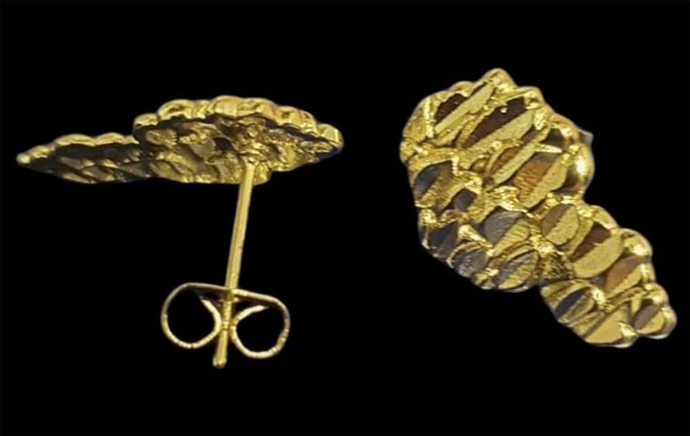 *Men's and women's nugget earrings set. *14k gold plated finish over solid alloy metal. *Stylish and secure pushback butterfly backings.