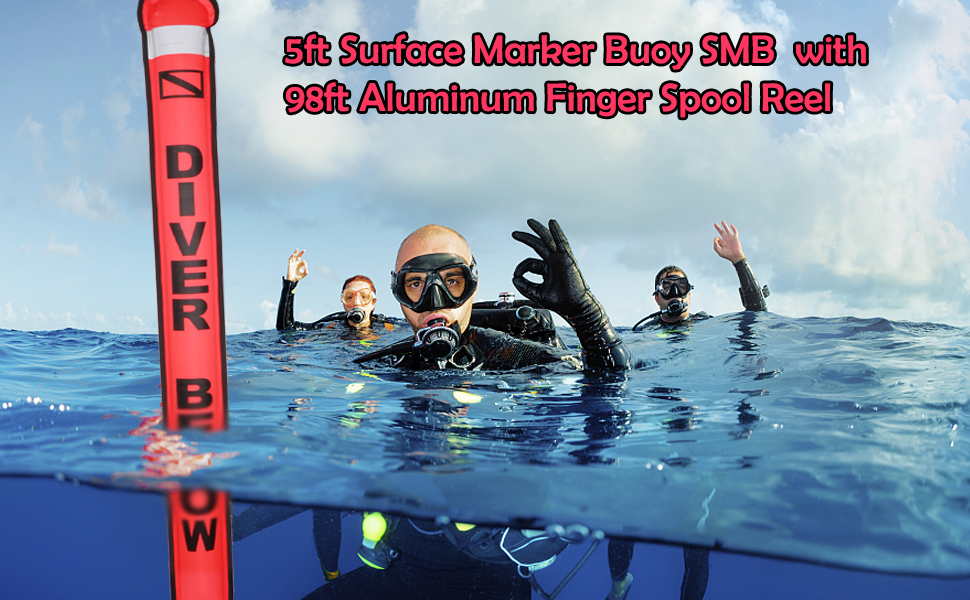 PERFECT DIVING KIT: Includes a 5 ft surface marker buoy and a 98 ft finger spool kit for your underwater activities. Compact and easy to carry, great for safe diving, snorkeling, spearfishing and other underwater activities.