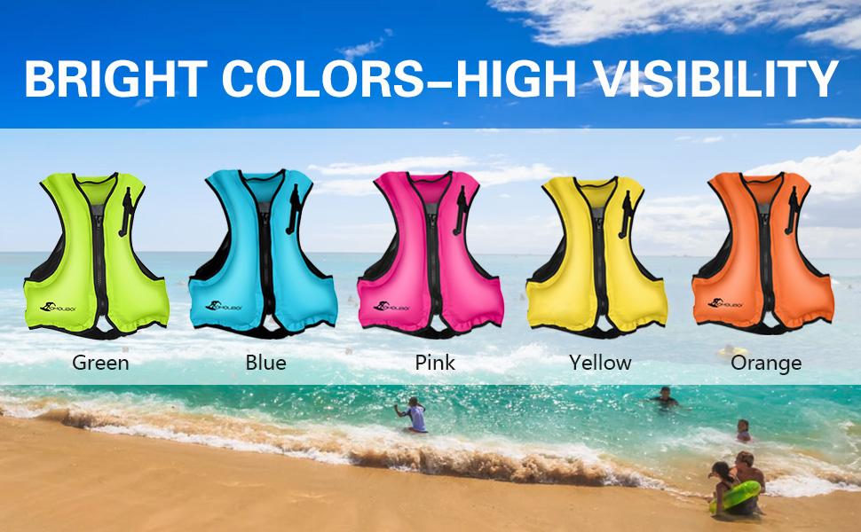 ✿ Lightweight and Portable: This snorkel floatation vest weighs only 1 lb. After deflated, the folded size is about 12 in*9 in*2 in, 2019 new package plastic bag with zipper, it's convenient to carry. This inflatable life jacket is a perfect choice for traveling. The visible colors are easy to be recognized at a far distance, great for learners