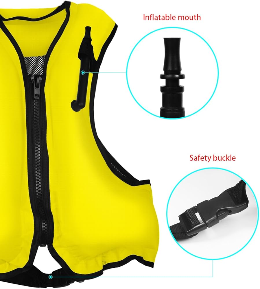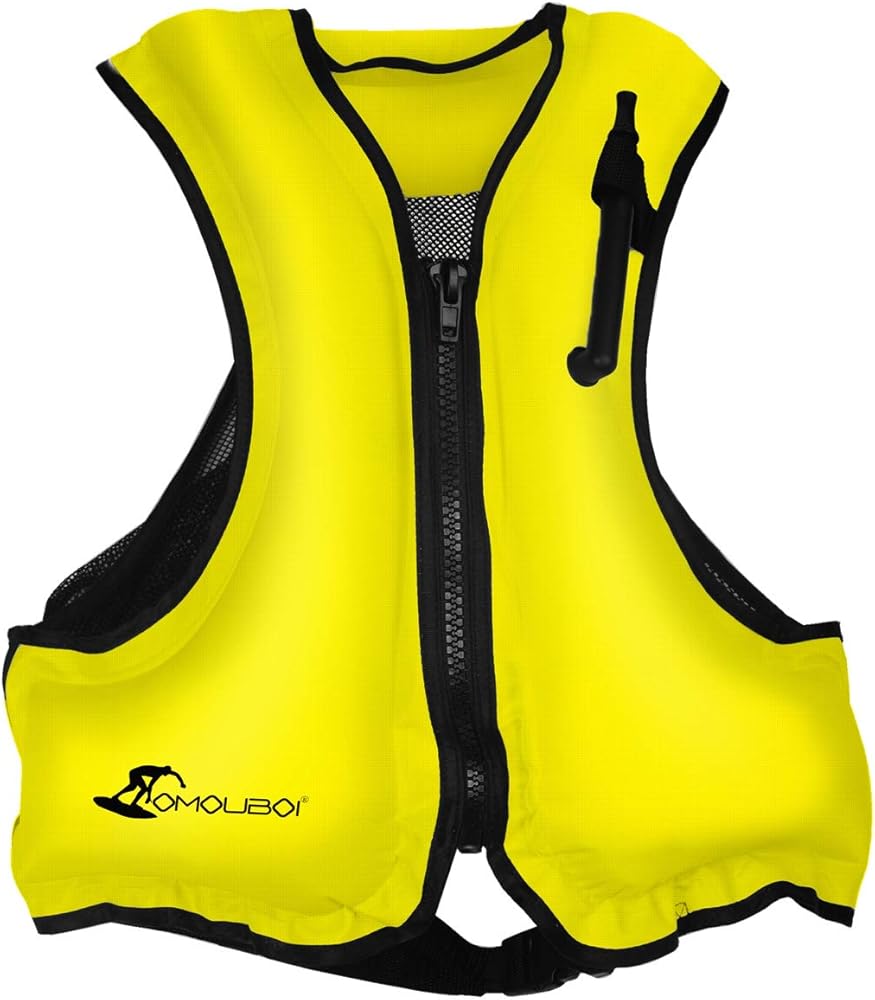 ✿ Reusable Snorkel Jacket: OMOUBOI snorkel jacket adult is made of ripstop polyester outer layer and thickened PVC inner liner which ensure our life vests don't leak during use. Our snorkel vests for adults will elevate your confidence and self-reliance in the water. Our inflatable vest is reusable, you would get more fun from this snorkel jacket
