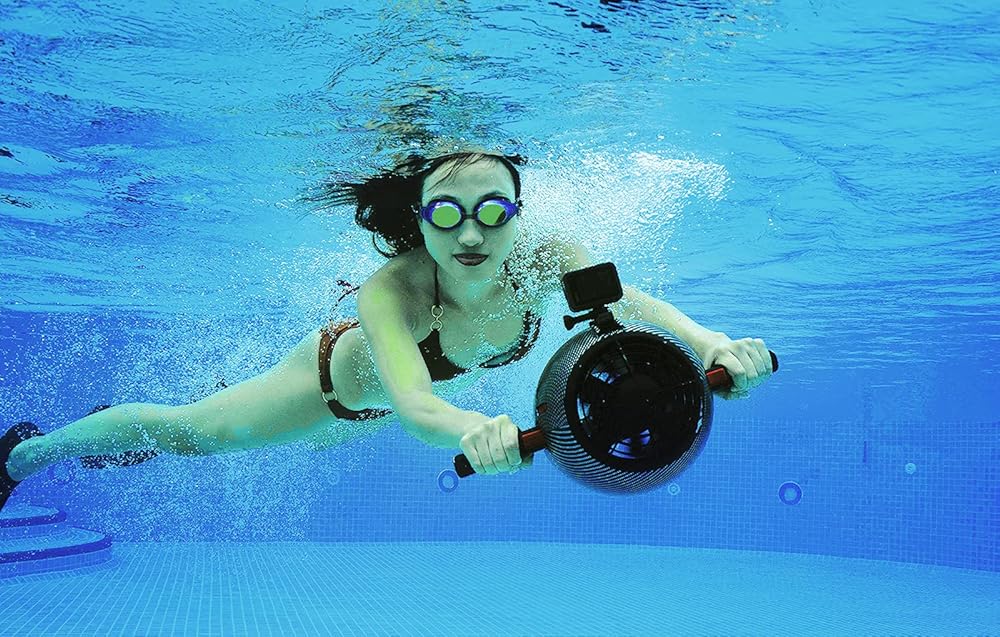 SeeThe JETPOD PRO Amazon ASIN B09DTQWXNJ is the first of its kind in both form and function, a compact yet powerful single motor underwater dive seascooter with foldable features at a reasonable price. The perfect companion for water enthusiast's travel needs. The easy to operate design caters to all ages and activities, from deep water reefs to back yard swimming pools. Fun for the entire family is guaranteed a fun and enjoyable experience.