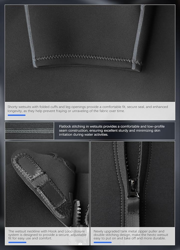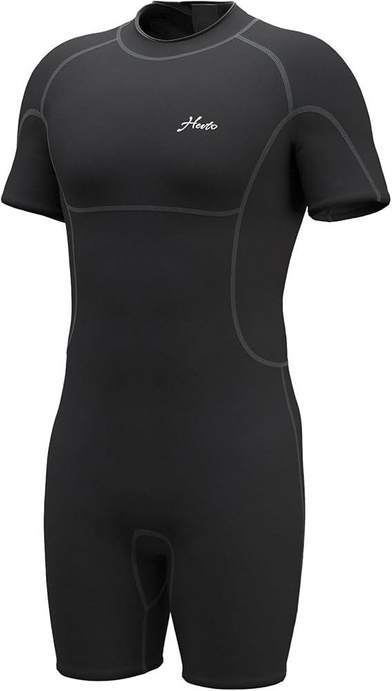 🌊What - Unleash unparalleled comfort and flexibility with the Hevto men's shorty wetsuit. Made from 3/2mm neoprene, it effortlessly enhances your water movements. Featuring a front zipper, this wetsuit allows for quick and easy wear, enabling seamless transitions in and out of the water.