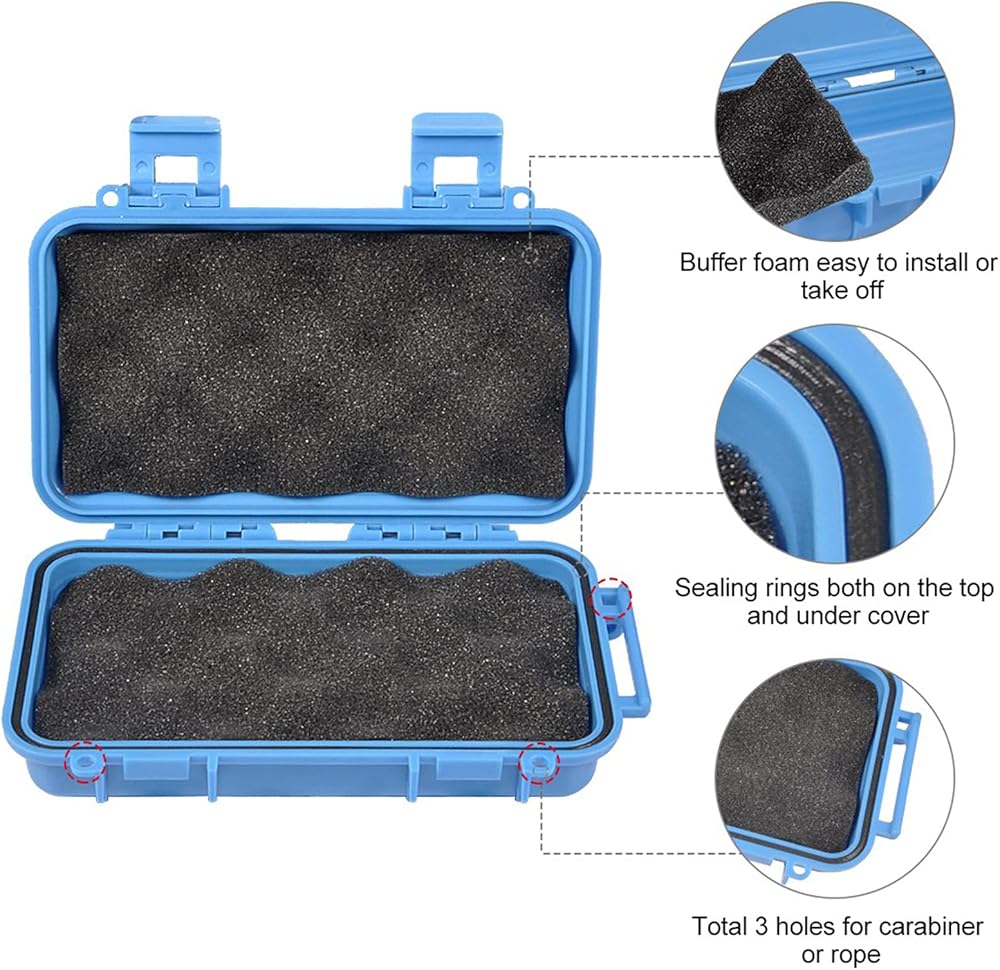 KOSDFOGE Waterproof Tool Box, Hard Plastic Storage Case with Foam, Shockproof U Shape Buckle for Fishing Kayaking Diving(L-Blue)