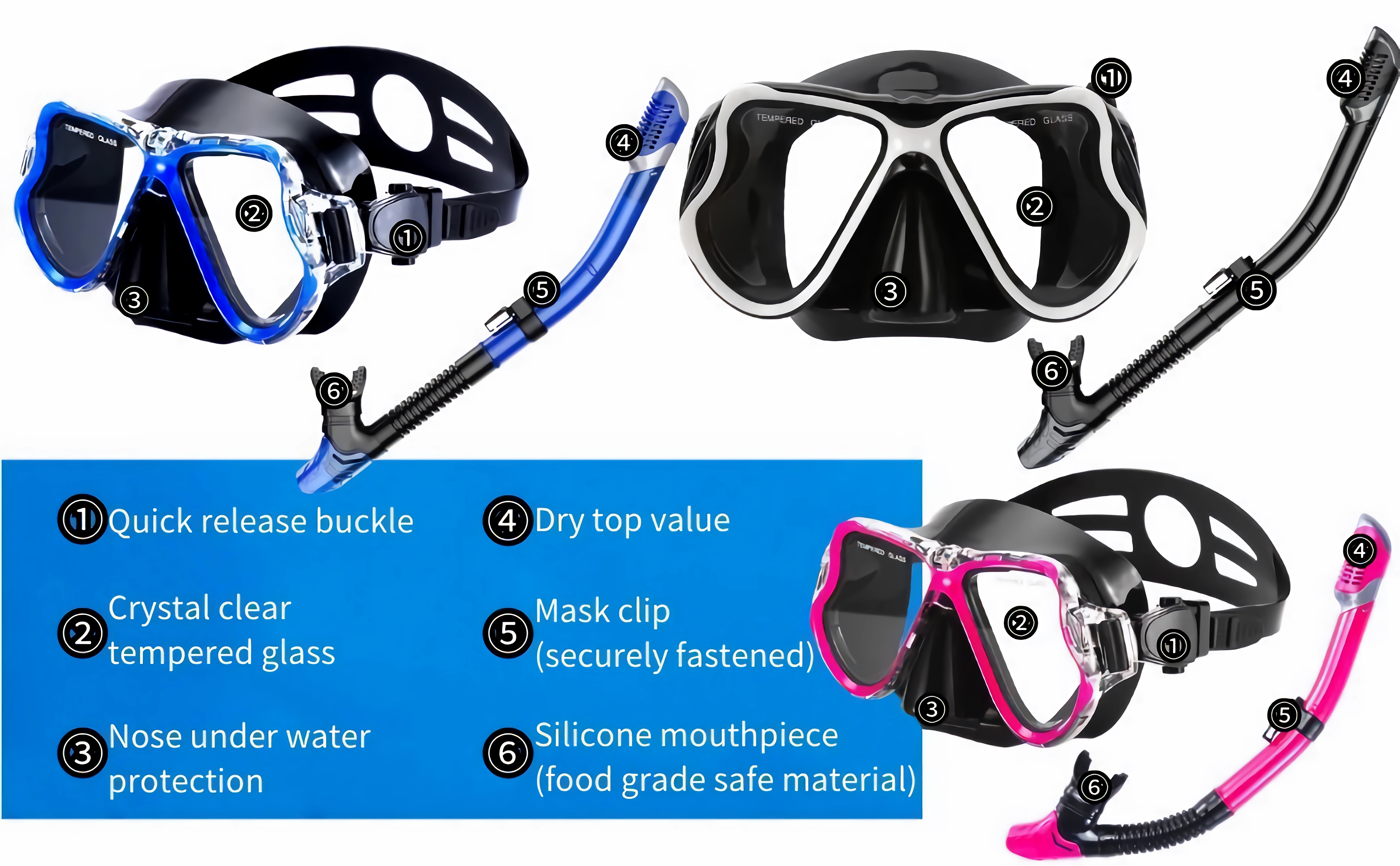 Our snorkel set is made of safe material, perfectly fits for men women, let you enjoy diving without danger.